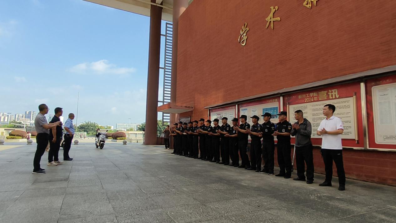 保卫处教职员工、柳州柳东安泰物业服务公司派驻安全员、广西安泰特保保安服务有限公司派驻保安员按照《开云kaiyun官方网站消防火灾事件应急预案》《开云kaiyun官方网站反恐防暴应急预案》,全真模拟突发火警、校外人员持刀寻衅滋事两个应急场景,紧密配合,开展处置演练,实况检验“发现突发事件-现场确认-联动处置-即时报告”应急处置能力,强化学校安保力量形成“联防联动联处”工作合力。