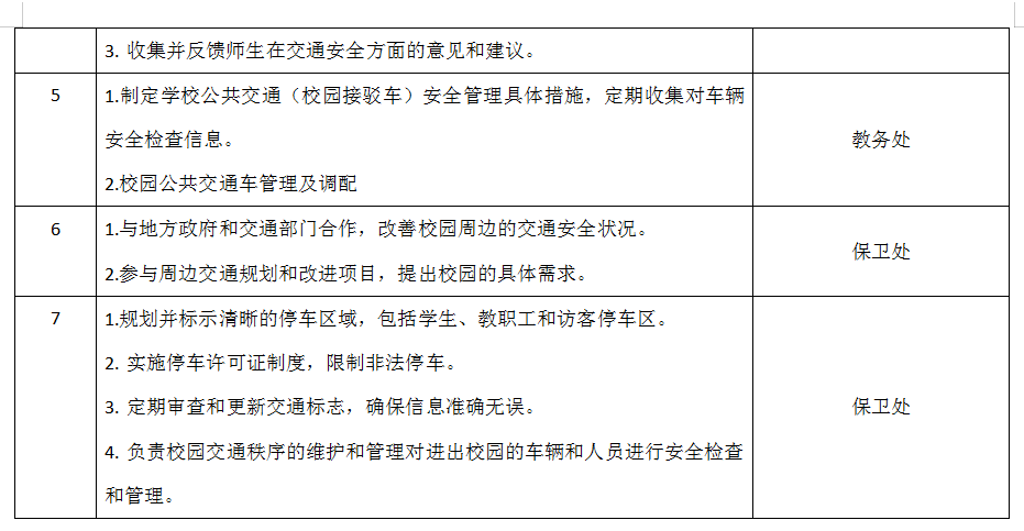 各二级学院(部门)要充分认识做好学生交通安全管理工作的重要性、严峻性、紧迫性,将学生交通安全管理工作抓实抓细,围绕各假期、秋季学期开学前后等时间节点,加强重点部署,形成分工明确、协作密切、齐抓共管的工作局面,共同提升学生交通安全管理水平。