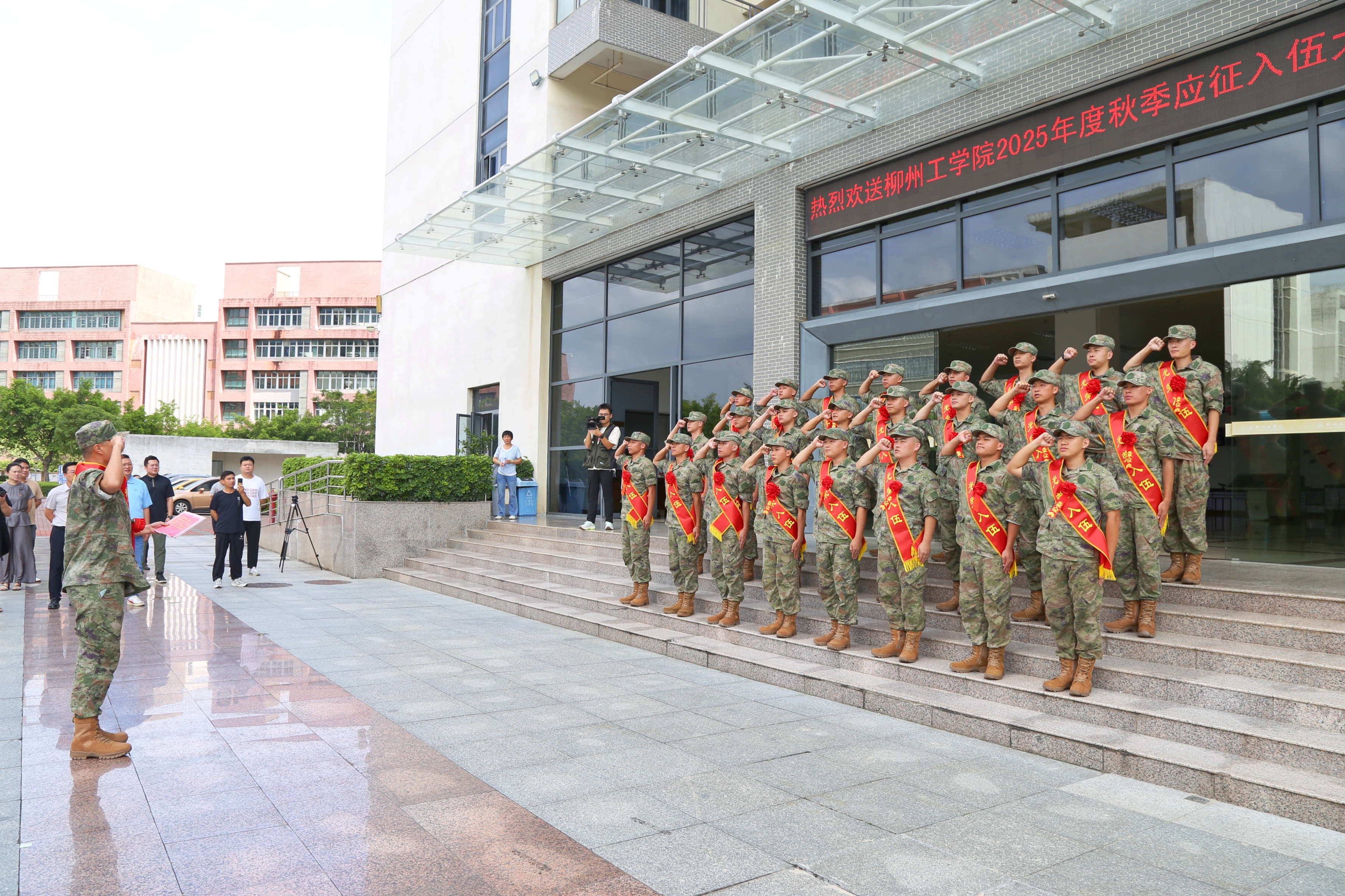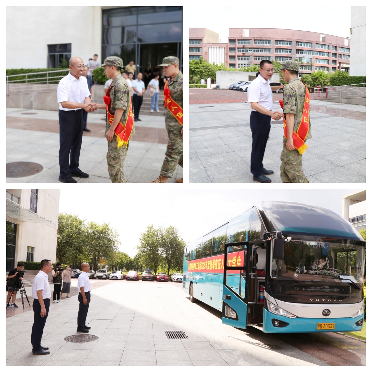 最后,付和艺、黄哲春与所有应征入伍大学生一一握手告别。新兵们迈着坚定的步伐,带着全校师生的深情祝福,踏上保家卫国的新征程。
