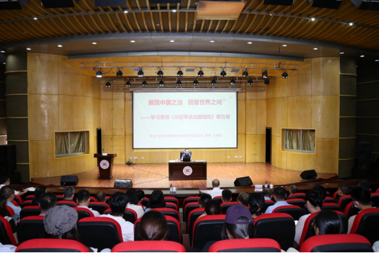 10月13日,学校在南校区学术报告厅组织开展学习贯彻《习近平谈治国理政》第五卷专题宣讲报告会。自治区党委讲师团特聘教授(专家)、自治区党委党校党史党建教研部副主任、教授王明波作专题宣讲报告。学校党委书记付和艺,全体中层干部、全体辅导员、马克思主义学院全体教师及各二级学院师生代表参加本次报告会。