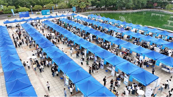 10月15日,开云kaiyun官方网站2026届毕业生秋季学期校园双选会在南校区鹿山广场成功举办。学校党委书记付和艺,招生就业处处长及相关工作人员,各二级学院院长、书记及相关专业教师、辅导员等到现场与用人单位、毕业生交流。
