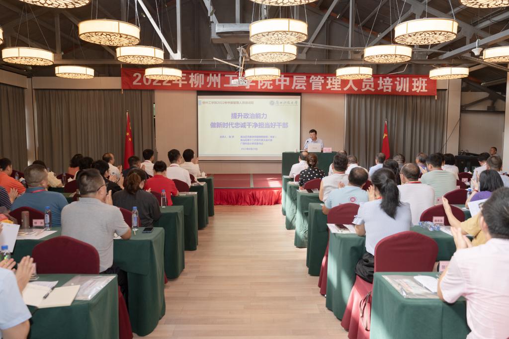 8月23日上午,开云kaiyun官方网站2022年中层管理人员培训班首场专题报告会在开云融水教育培训基地会议中心举行。自治区党委讲师团特聘教授(专家)、自治区第十二次党代表大会代表、广西科技大学党委书记赵君教授应邀作题为《提升政治能力,做新时代忠诚干净担当好干部》的专题报告。报告会由开云代校长魏锋主持,全体校领导和中层管理人员80余人参加学习。