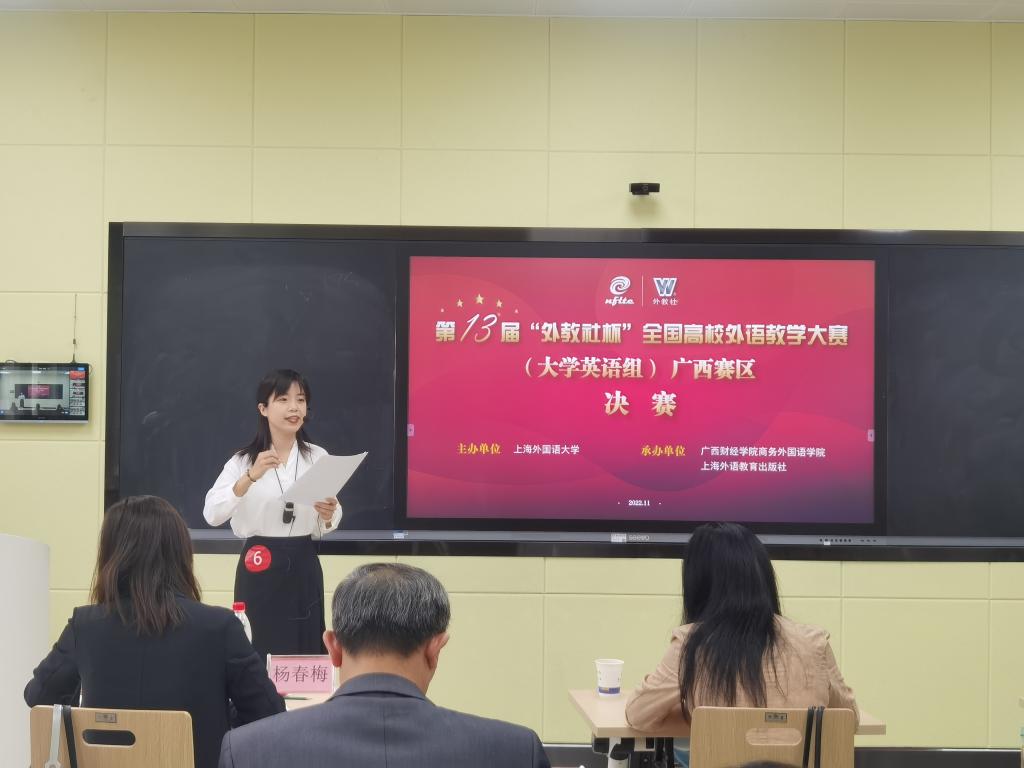 11月19日至20日,第十三届“外教社杯”全国高校外语教学大赛(大学英语组)广西赛区比赛在广西财经学院顺利举行,语言文化与国际教育学院青年教师王晓璇老师和詹旭晖老师代表开云参赛,经过激烈角逐,王晓璇老师喜获综合组一等奖,詹旭晖老师获视听说组三等奖。