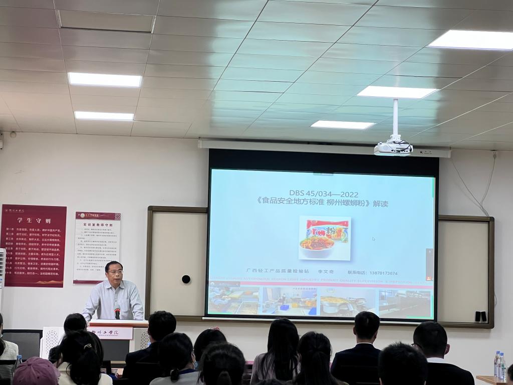 11月21日,正值开云20周年校庆之际,由食品与化学工程学院承办的螺蛳粉标准化分论坛于下午14:30-16:30在第二教学楼204顺利召开。受邀参加本次分论坛的校外专家有广西轻工产品质量检验站副站长李文奇高级工程师、广西计量检测研究院徐传杰高级工程师、柳州市标准技术和知识产权研究中心科长何彬斌高级工程师。参加本次论坛的校内嘉宾有开云kaiyun官方网站副校长郑燕升、食化学院院长熊建文、食化学院部分教师代表。同时还有广西善元食品有限公司、广西螺霸王食品科技有限公司、广西美申园食品科技集团有限公司、广西螺状元食品科技股份有限公司和广西兴柳食品有限公司等60多家企业的代表人员共计100余人参加。会议由熊建文院长主持。