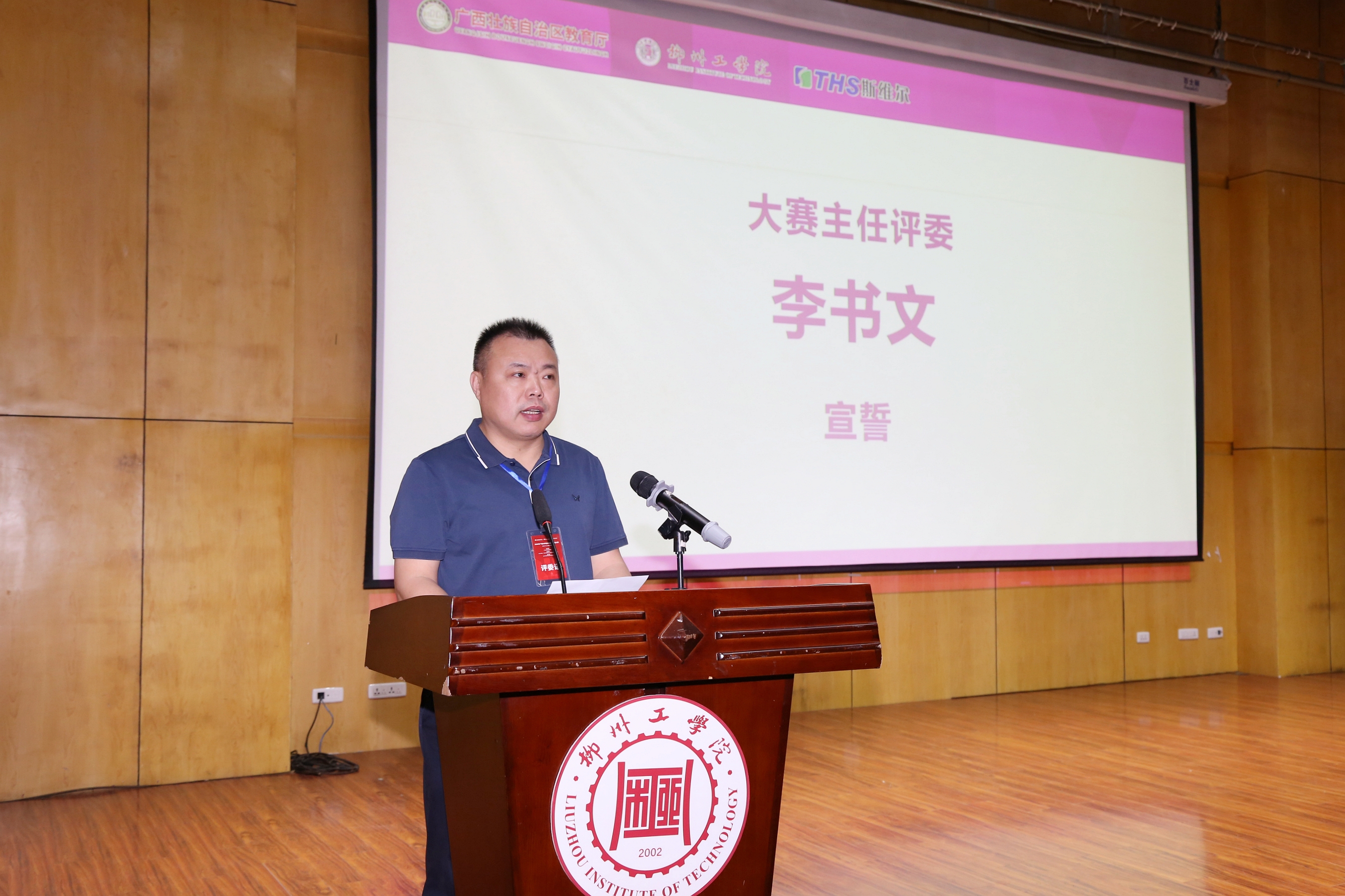 李书文代表全体评委郑重宣誓,将严格遵守比赛规则和评委纪律,遵守参赛选手文明裁判,严肃认真,不徇私情,秉公办事,做到公平、公正、公开,尽心尽力完成各赛项的成绩裁判工作。