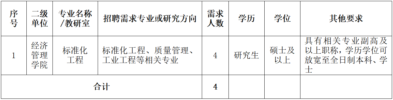 备注:1.未取得专业技术资格的硕士研究生年龄不超过30周岁,博士研究生不超过40周岁;已取得中级专业技术资格的年龄不超过35周岁;副高专业技术资格的不超过40周岁;正高级专业技术资格的不超过45周岁。2.本科、研究生所学专业一致或相近。