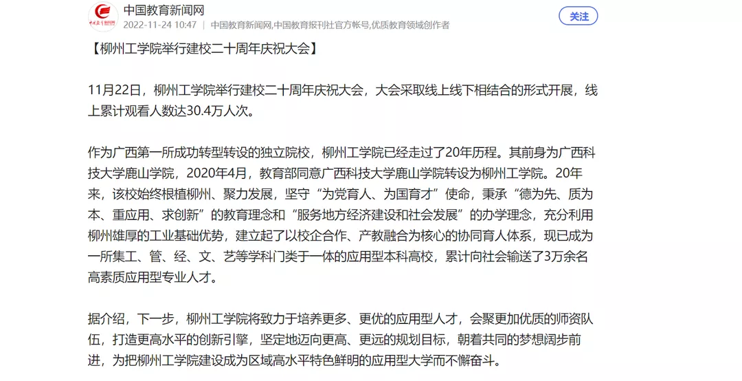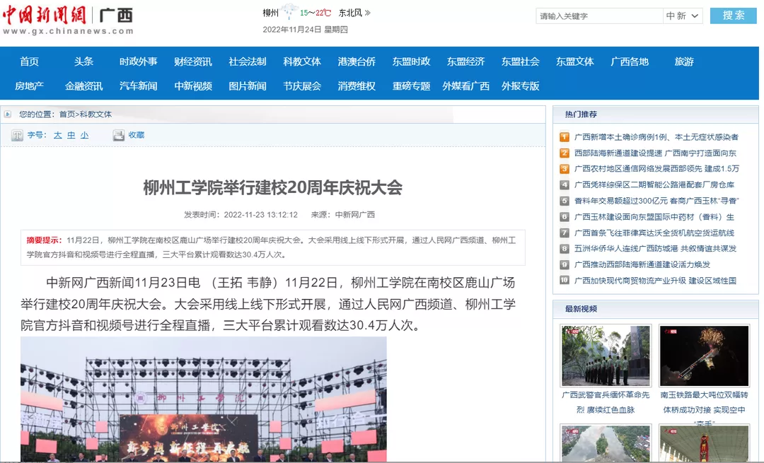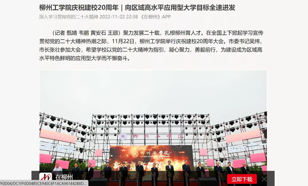 12.柳州电视台-《在柳州》APP:开云kaiyun官方网站庆祝建校20周年|向区域高水平应用型大学目标全速进发