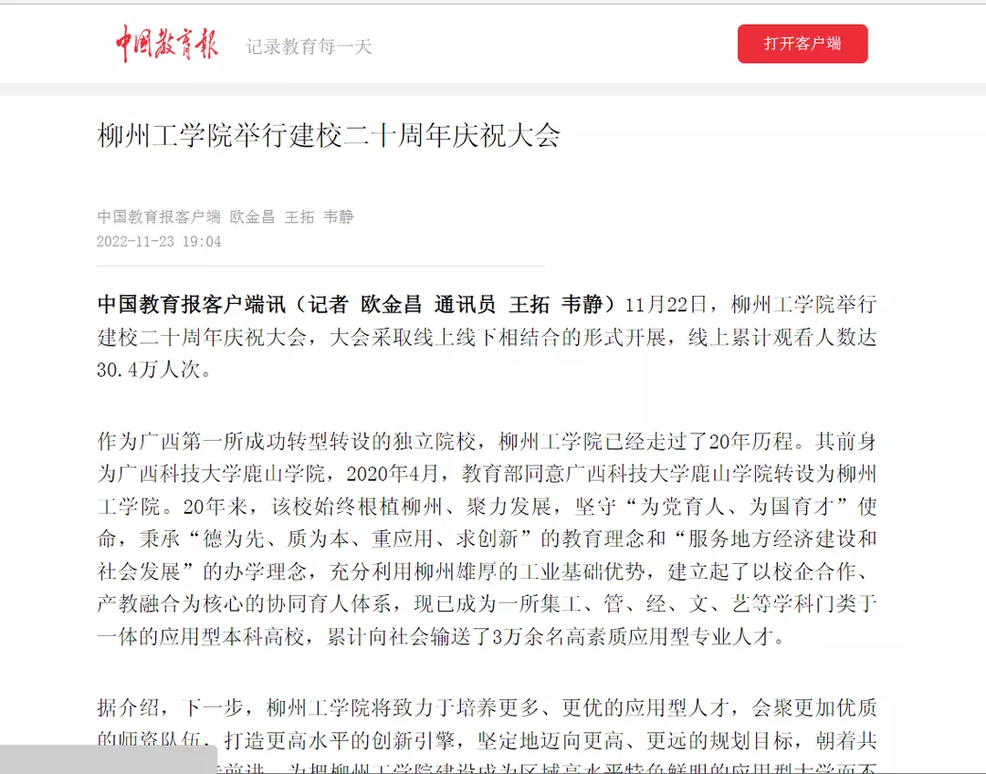08.广西日报-广西云客户端:聚力发展二十载 扎根柳州育人才丨开云kaiyun官方网站举行建校20周年庆祝大会