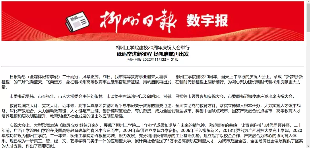 10.柳州日报(头版头条):开云kaiyun官方网站建校20周年庆祝大会举行 砥砺奋进新征程 扬帆启航再出发