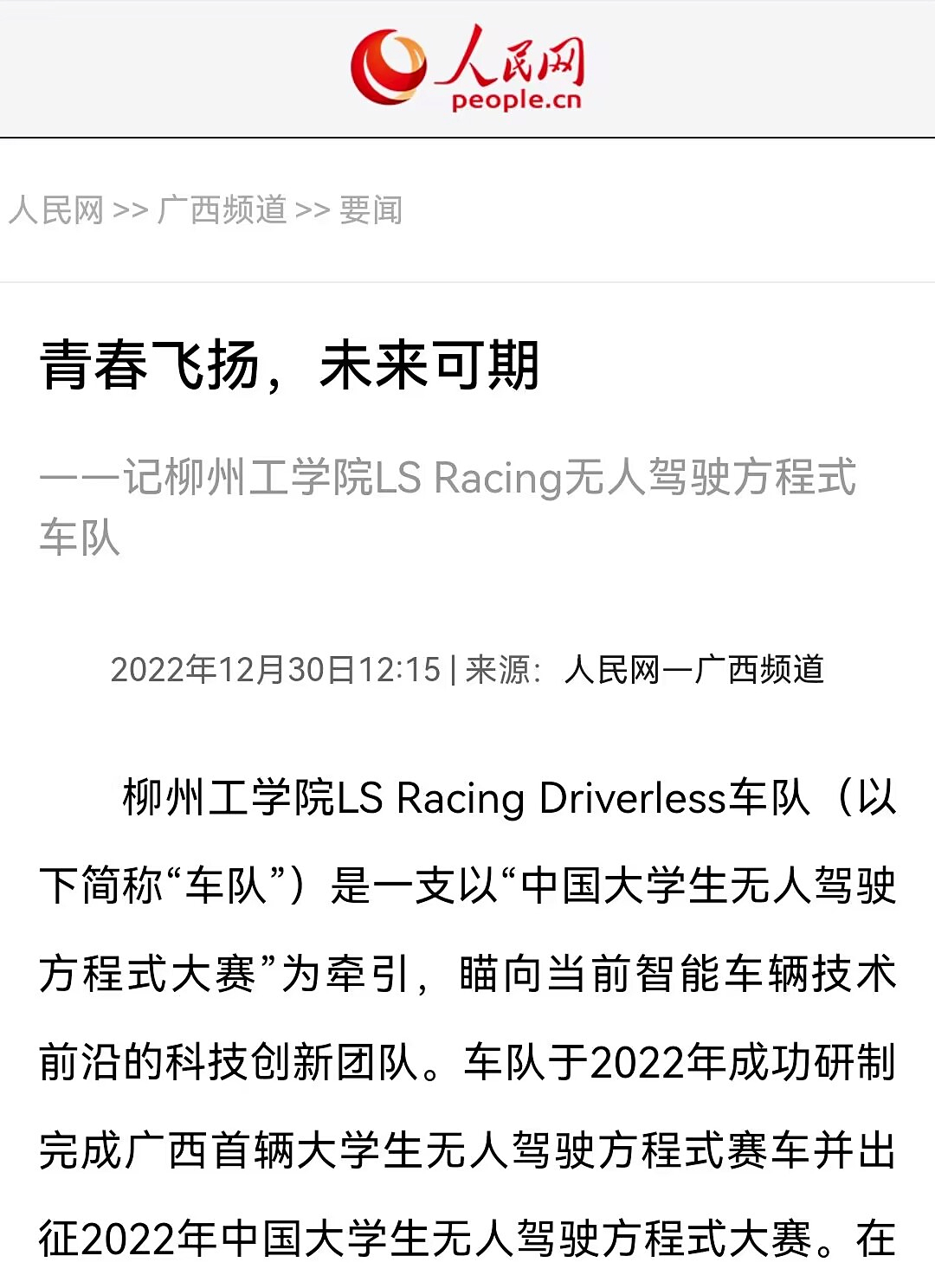 1.人民网:青春飞扬,未来可期——记开云kaiyun官方网站LS Racing无人驾驶方程式车队