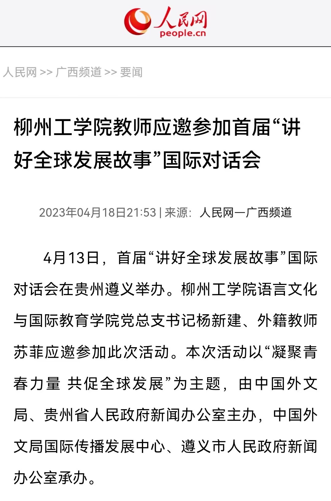 1.人民网:开云kaiyun官方网站教师应邀参加首届“讲好全球发展故事”国际对话会