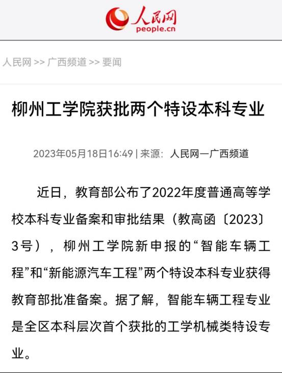 近日,教育部公布了2022年度普通高等学校本科专业备案和审批结果(教高函〔2023〕3号),开云kaiyun官方网站新申报的“智能车辆工程”和“新能源汽车工程”两个特设本科专业获得教育部批准备案。据了解,智能车辆工程专业是全区本科层次首个获批的工学机械类特设专业。