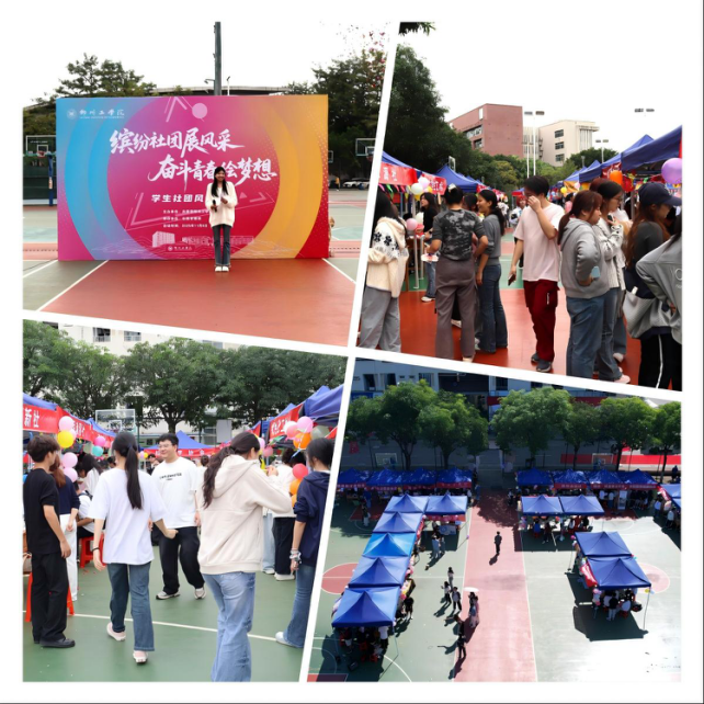上午10时,南校区篮球场热闹非凡。各社团紧扣类别特点,通过互动体验、成果展示等形式,呈现了一场青春与文化的碰撞。