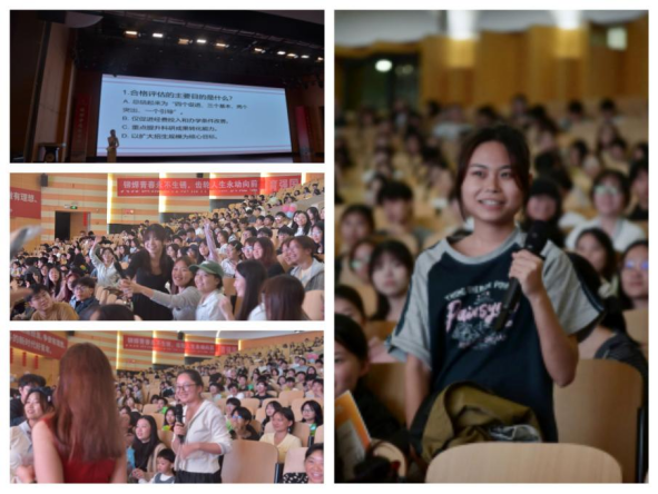 晚7时,大学生活动中心灯光璀璨,文艺汇演以“青春”为主线,分三个篇章精彩呈现。音乐爱好者协会、大学生艺术团声乐队、吉他爱好者协会等社团轮番登台,《爱你》《星辰大海》《小幸运》等歌曲唱响青春旋律;舞蹈爱好者协会的动感舞步、云寂古风社的诗意演绎,与《山海》《光年之外》等金曲合唱碰撞出绚烂火花。演出间隙还穿插“本科教学工作合格评估基本知识”互动问答,师生积极参与,在轻松氛围中传递知识。