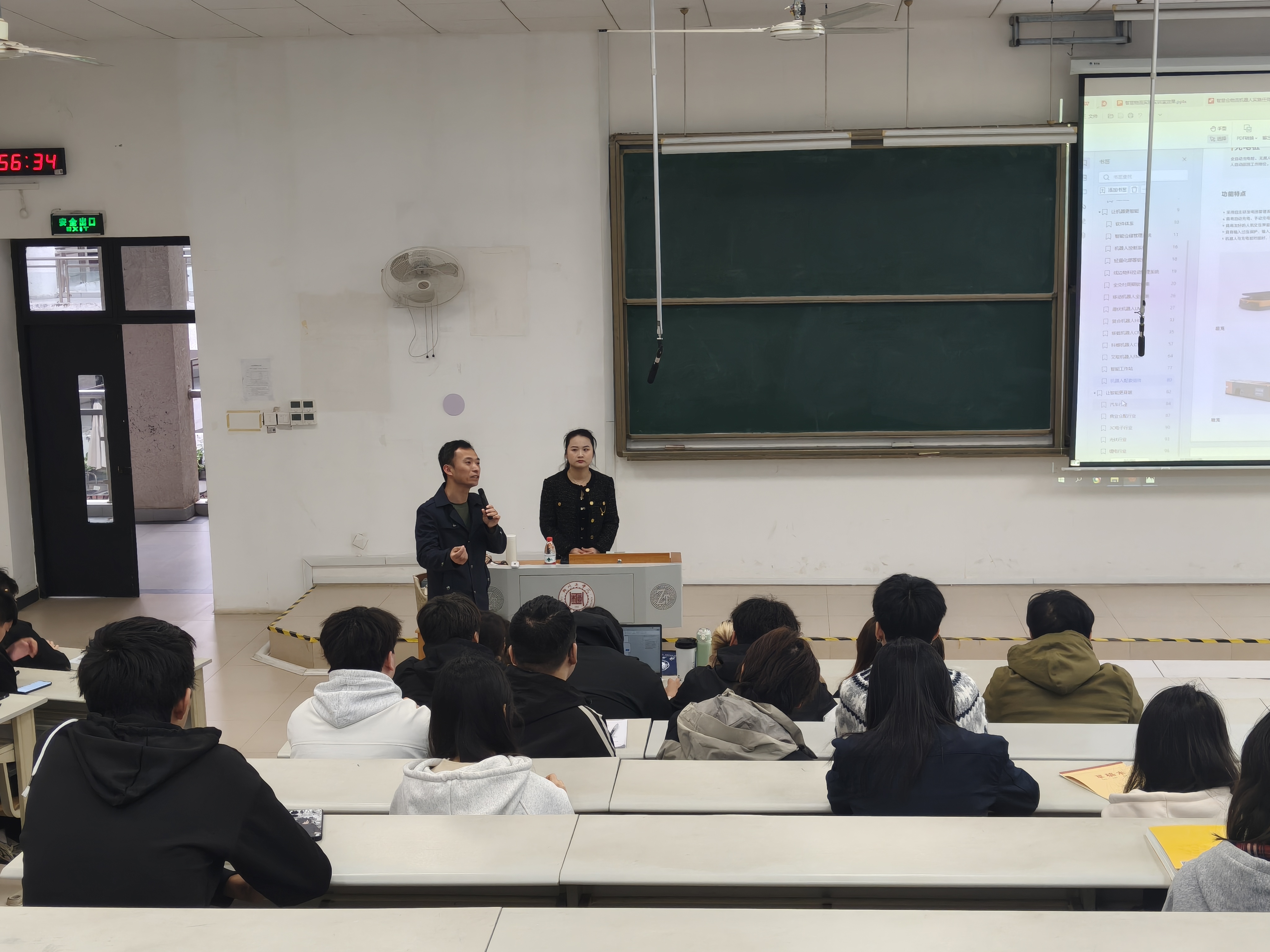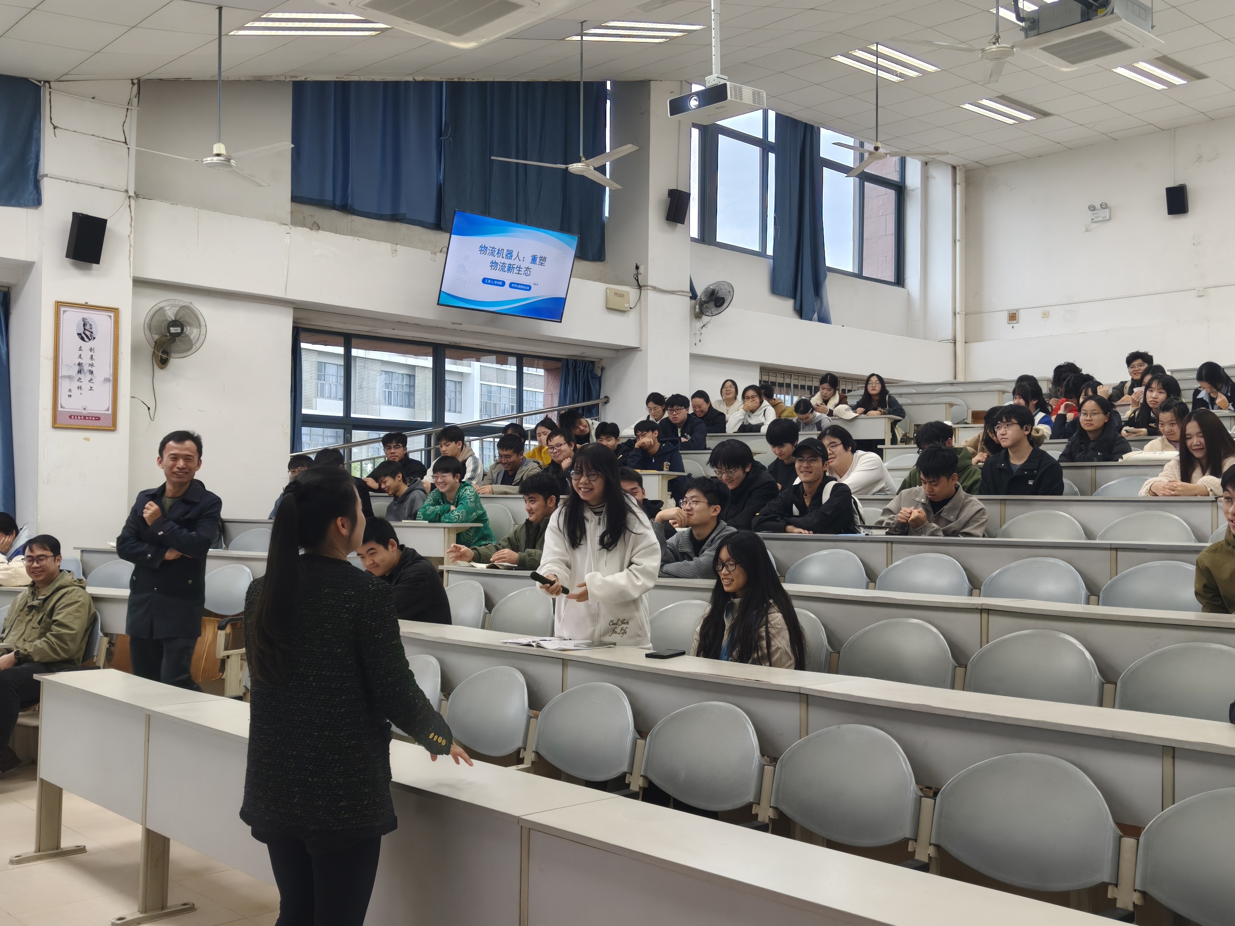 讲座中,曾经理系统梳理了物流机器人的产品体系与应用场景,从潜伏式机器人到无人叉车,从数字化仓储管理系统到智能调度仿真平台,通过视频演示与产品手册相结合的方式,生动阐释了机器人在搬运、分拣、配送等核心环节的应用价值,使同学们对“黑灯工厂”和“无人仓储”的智能化运作有了直观认识。她指出,物流行业的智能化转型正在重塑就业格局,机器人销售、现场实施、系统调度与售后维护等新兴职业方向,为毕业生开辟了更广阔的发展空间。