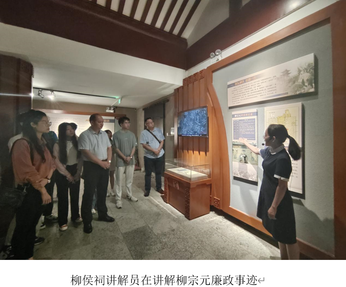柳侯祠负责讲解的工作人员为参加此次活动的老师和同学们详细介绍了柳侯祠的历史和柳宗元的生平事迹,重点介绍了柳宗元廉政为民的先进事迹。