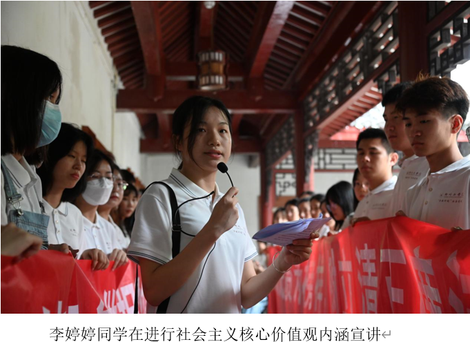 随后,经济管理学院社会主义核心价值观宣讲团成员李婷婷和王茹洁同学在廉政教育基地长廊上为大家宣讲了社会主义核心价值观的内涵,以及当代大学生如何践行社会主义核心价值观。