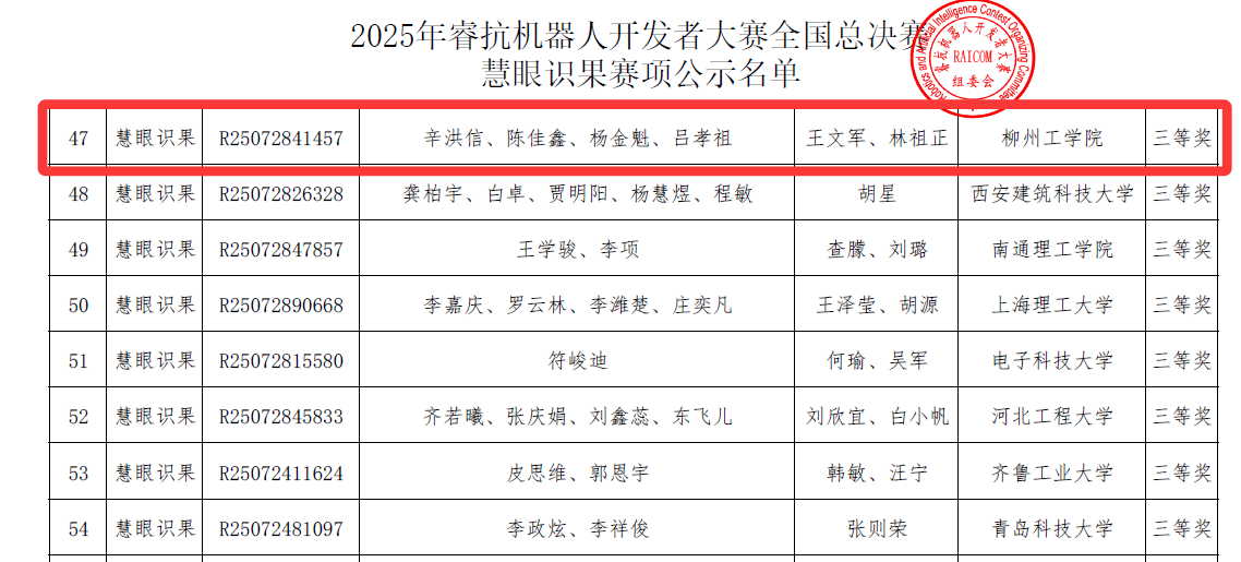 8月22日—23日,在2025年睿抗机器人开发者大赛(RAICOM)全国总决赛中,开云学子充分利用专业知识,沉着应战,在慧眼识果赛项中斩获全国三等奖。