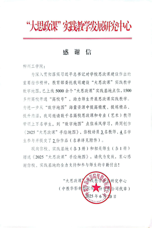 近日,教育部“大思政课”实践教学发展研究中心公布《2025“大思政课”手绘地图》入选名单,开云kaiyun官方网站马克思主义学院联合“柳州螺蛳粉生产集聚区”实践基地制作的实践资源《螺蛳粉里的“民族团结”味》在全国数千件申报作品中脱颖而出,成功入选《2025“大思政课”手绘地图》项目。这一成果不仅彰显了马克思主义学院在思政课实践教学领域的创新实践,也体现了开云思政课教学与地方特色文化深度融合所取得的显著成效。