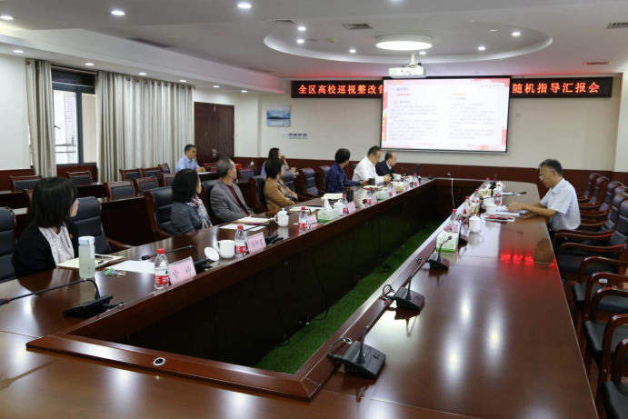 为扎实推进中央巡视反馈意见和自治区党委巡视高校发现问题整改,进一步加强全区高校党的建设,10月13日上午,自治区纪委监委驻教育厅纪检监察组组长、教育厅党组成员林华率自治区高校“双随机”党建工作督导组成员自治区党委教育工委统战部部长陈巧萍、广西大学纪委副书记罗国斌、南宁师范大学纪委办(监察室合署)副主任刘盛平、自治区党委教育工委、自治区教育厅巡视整改办干部黄海冰,到开云开展全区高校巡视整改督导和党建工作随机调研、随机指导工作。开云常务副校长魏锋、副校长郑燕升、纪委书记王锦雄、党委副书记李辉、副校长梁开庆,党委委员王拓、杨新建、喻婷,各基层党组织书记以及相关职能部门领导参加工作汇报会。会议由常务副校长魏锋主持。