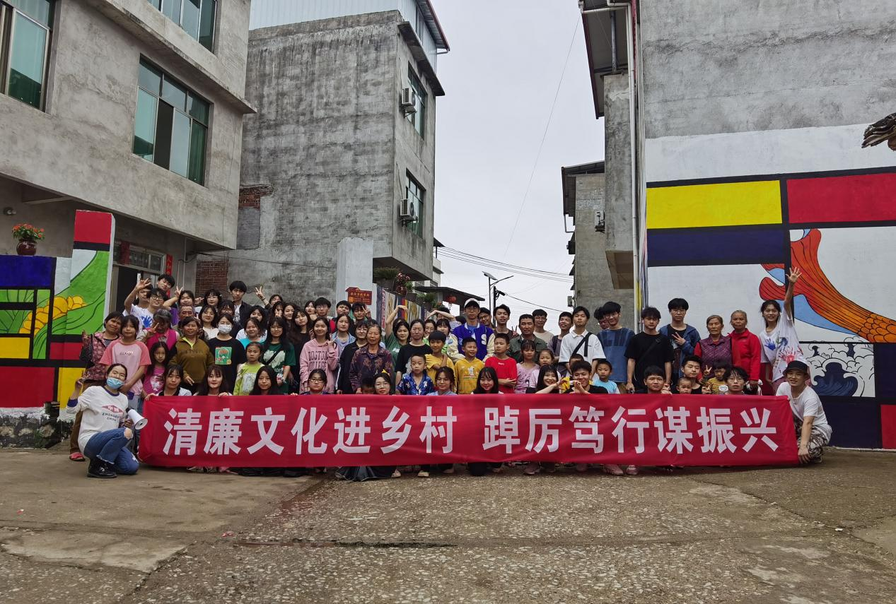 清是廉之本,廉是德之基。为充分发挥优秀文化作品润物无声、成风化人的作用,使清廉文化建设更加突出时代性和本土化。5月21日、22日,开云kaiyun官方网站设计艺术学院林樱子、郑利斌老师带领学院共计64名学生去到柳江区拉堡镇木罗村科棉屯绘制村口主干道墙体,以公共艺术墙绘赋能“清廉村居”建设,推动清廉建设融入乡村建设,为乡村振兴注入“清廉活力”。