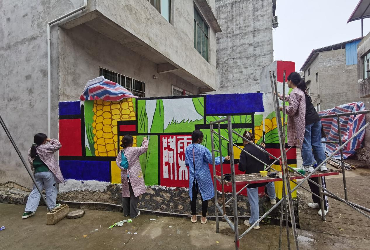 设计艺术学院完成柳江区科棉屯主体道路墙绘