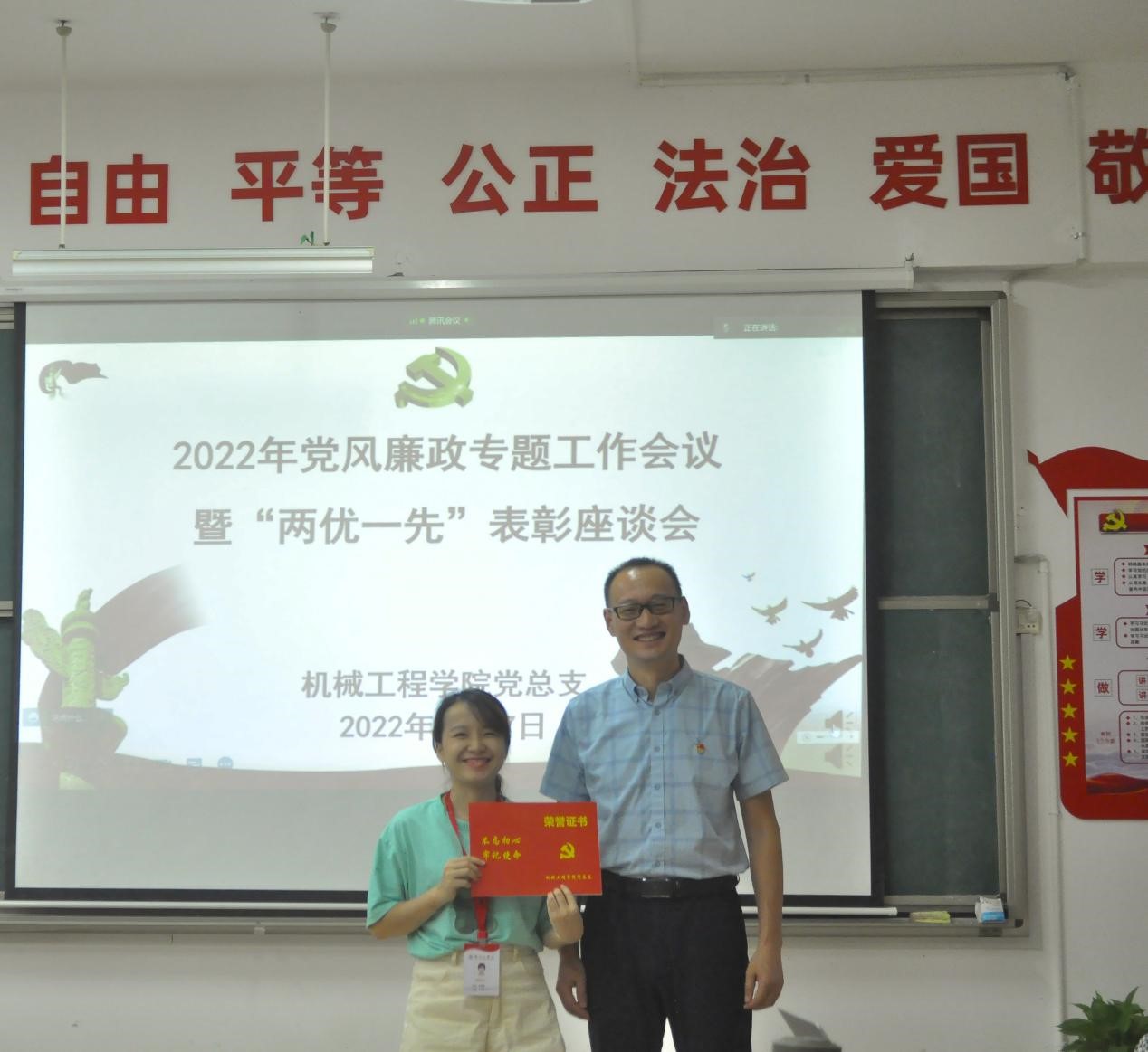 会上,党总支书记别远刚宣读了机械工程学院关于“两优一先”的表彰文件,并向获得表彰的个人及基层党组织表示祝贺,向全体党员致以节日的问候。
