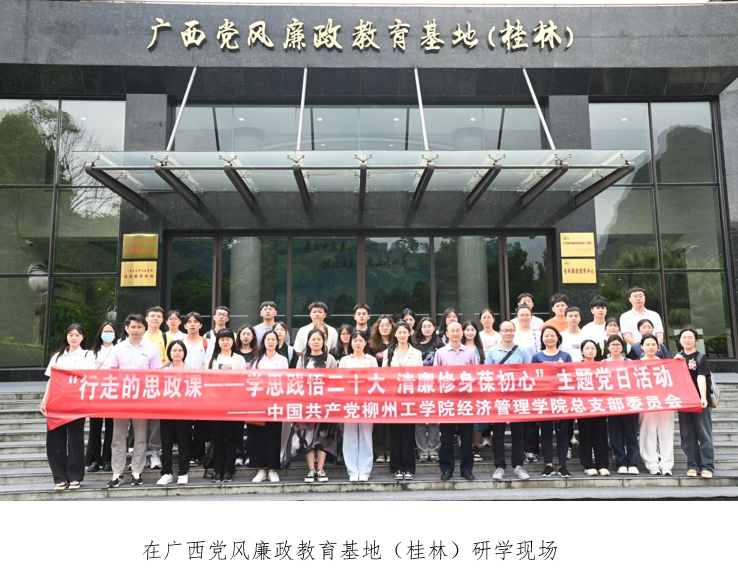 2023年5月4日,经济管理学院党总支组织师生骨干赴广西桂林开展“行走的思政课——学思践悟二十大•清廉修身葆初心”主题党日活动暨纪念“五四运动”104周年主题团日活动。经济管理学院党总支副书记韦祁、各学生党支部书记、教师骨干代表、学生党代表、团学学生骨干共40余人参加此次活动。