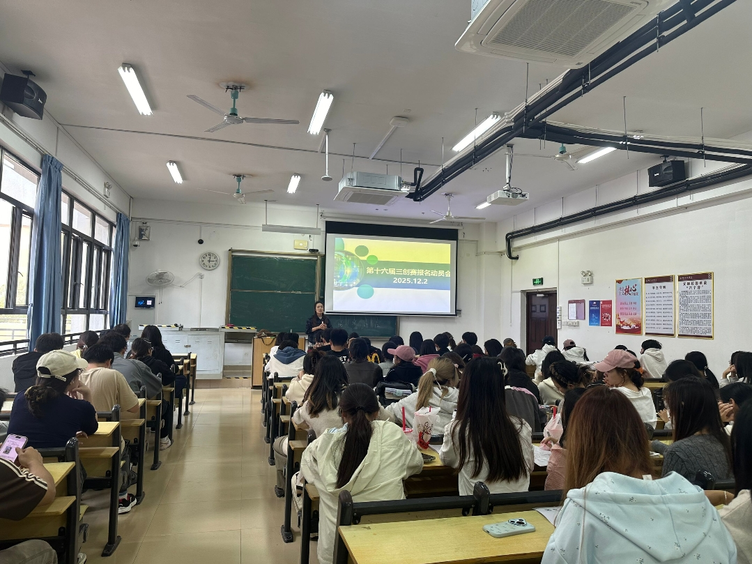 为深入推进创新创业教育与专业实践相融合,提升学生的创新思维与实战能力,2025年12月2日,经管学院市场营销专业举办第十六届全国大学生电子商务“创新、创意及创业”挑战赛(以下简称“三创赛”)动员培训会。会议由营销教研室副主任吴莹莹老师主持,围绕赛事规则、赛道设置和组队建议等内容展开系统讲解,正式拉开本届赛事备战序幕。