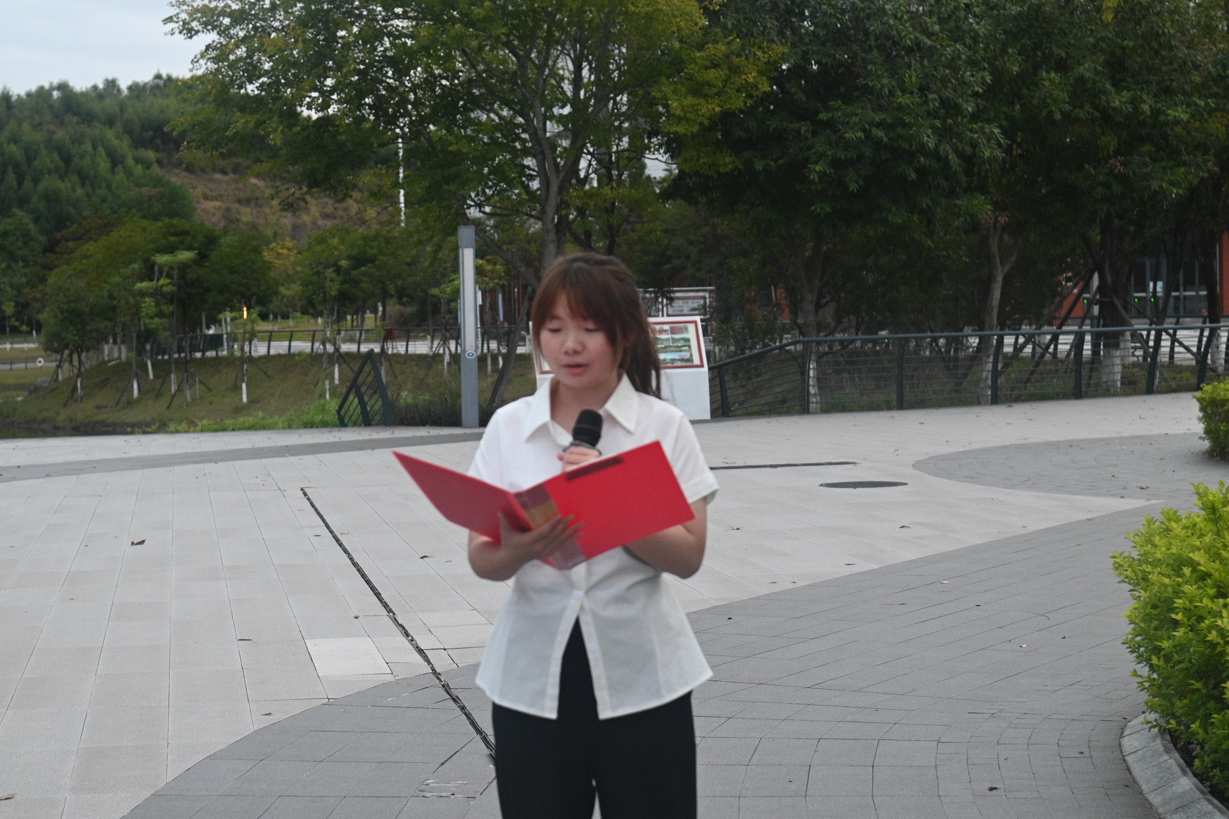 在国旗下讲话环节,经济管理学院学生代表财务251班曹诗若同学向全体同学发出倡议。她呼吁大家将爱国之情转化为实际行动,以主人翁的责任感和使命感,积极投身学校本科教学合格评估工作,在日常学习生活中展现经管学子勤学善思、求真务实的优良学风,彰显新时代青年的责任担当。