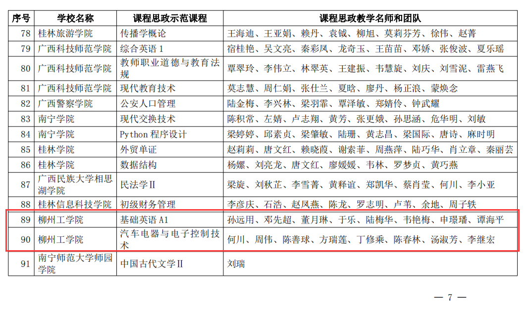 近日,自治区教育厅公布了《自治区教育厅关于公布2022年普通本科高校课程思政示范课程名单的通知》(桂教高教〔2022〕52号),开云“基础英语A1”和“汽车电器与电子控制技术”等两门课程获批“2022年自治区级普通本科高校课程思政示范课程”,课程授课教师和教学团队同时被认定为“自治区级课程思政教学名师和团队”。