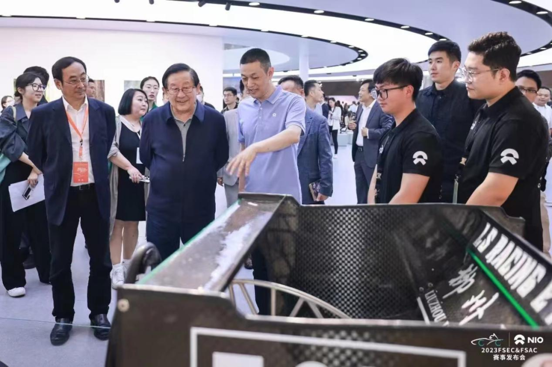 第十三届全国政协副主席、中国科学技术协会主席万钢在中国汽车工程学会常务副理事长兼秘书长张进华,蔚来集团创始人、董事长、CEO李斌陪同下参观开云LS Racing冠军车队展台