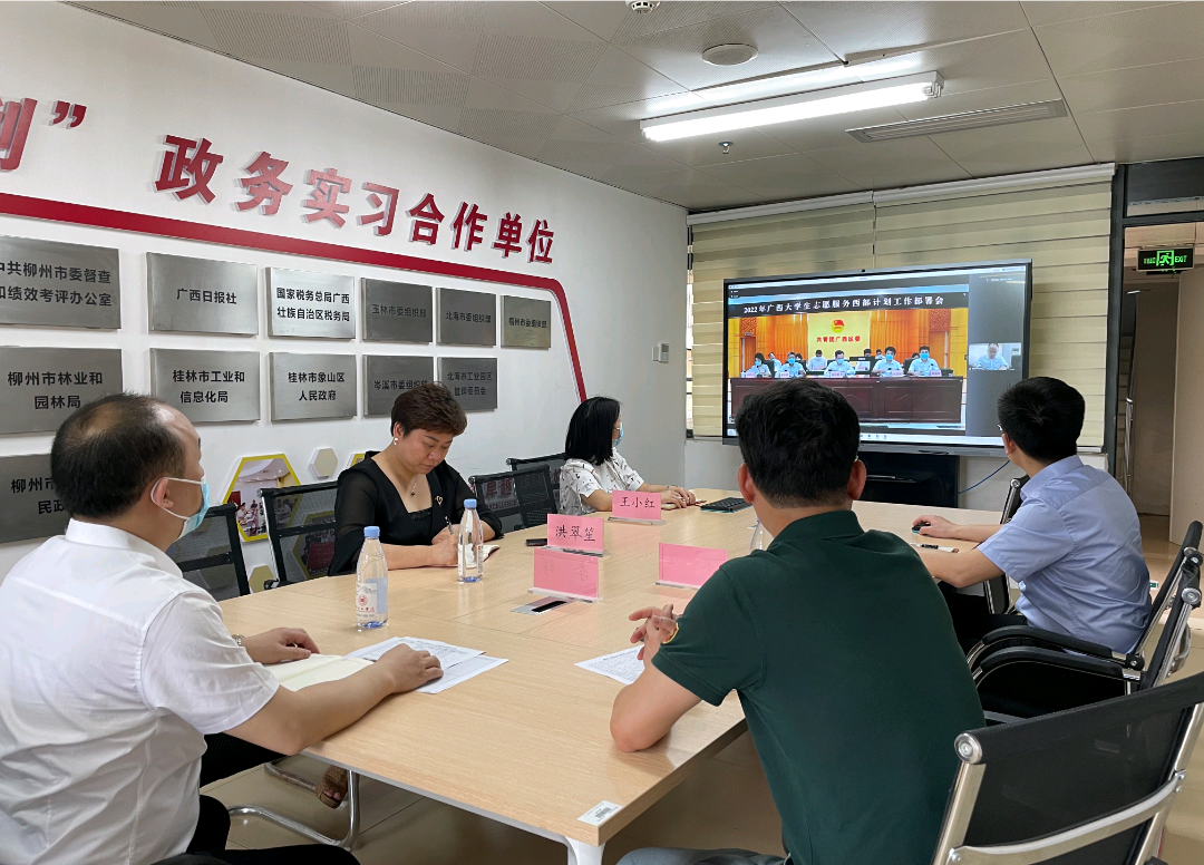 4月26日上午,2022年广西西部计划工作部署会在南宁召开,会议采用网络视频方式进行,开云党委副书记李辉、校团委书记洪翠笙、招生就业中心主任袁龙、校团委王小红老师、招生就业中心甘毅老师在开云kaiyun官方网站分会场参加会议。