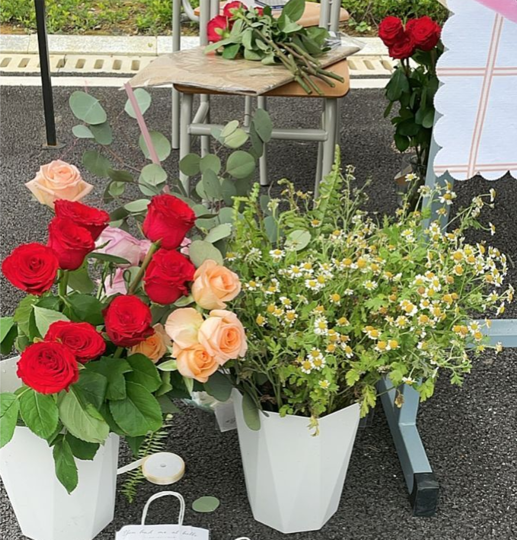 图为:鲜花摊位销售的鲜花