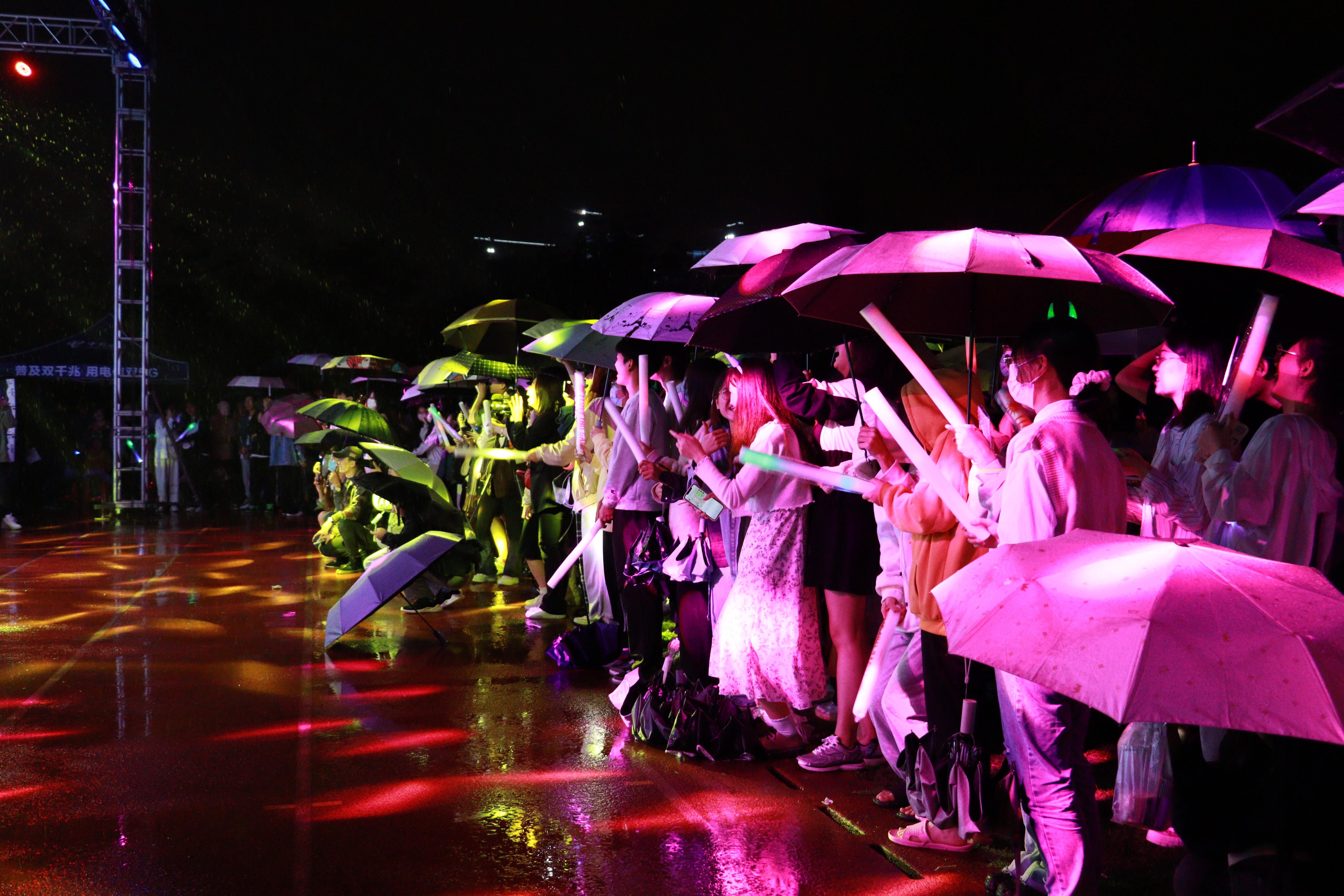 夜幕将至,“星”光闪耀,即使天气不作美但是田径场依旧热闹非凡,伴随动感的音乐,本次校园音乐会拉开了序幕。现场观看的同学们欢聚一堂,演唱者们也都准备充分,蓄势待发。此次音乐会通过Rap、独唱、弹吉他、舞蹈、随机演唱等多种表演形式,让音乐节活动更丰富多彩,同时校团委老师和同学们都参与进来,感受艺术的魅力,大家都热情激动地参与到音乐会中,为一个个精彩的表演欢呼喝彩。