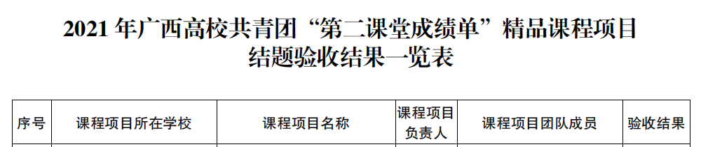 本次精品课程项目是面向全区高校征集,经专家评审,全区共20门课程入选2022年广西高校共青团“第二课堂成绩单”精品课程立项项目名单。