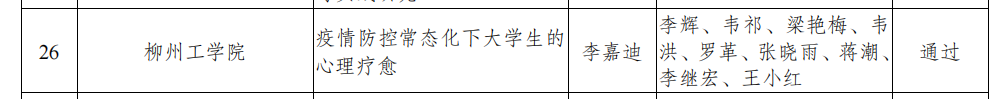 在共青团广西区委、自治区教育厅发布的《关于公布2021年广西高校共青团“第二课堂成绩单”精品课程立项项目结题验收结果的通知》(桂青联发〔2022〕28号)文件中,开云《疫情防控常态化下大学生的心理疗愈》课程项目通过验收。