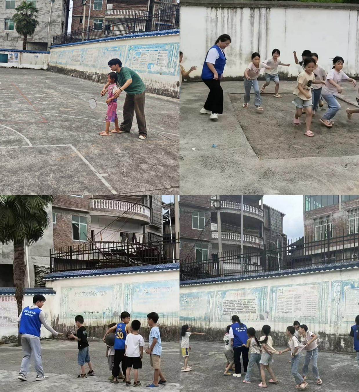 “民族大团结”宣讲与“外面的世界”分享会相继进行。前者通过小故事、漫画讲解民族互助史,以及看图猜服饰等互动体验深化理解团结友爱;后者,队员们通过分享大学见闻、展示城市风貌,在孩子心中种下“走出去看看”的种子。体育游戏中,投篮、打羽毛球等活动让“团结”从认知落到行动——就像游戏里要并肩向前,让民族团结之魂与逐梦之志在互动中自然生长。