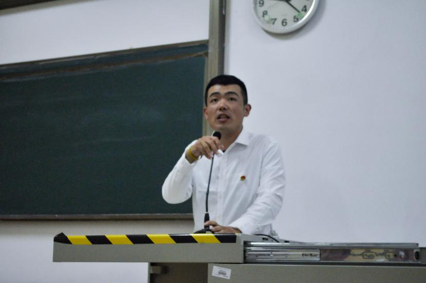 图为:机械工程学院青年志愿者协会会长巩贺高发言