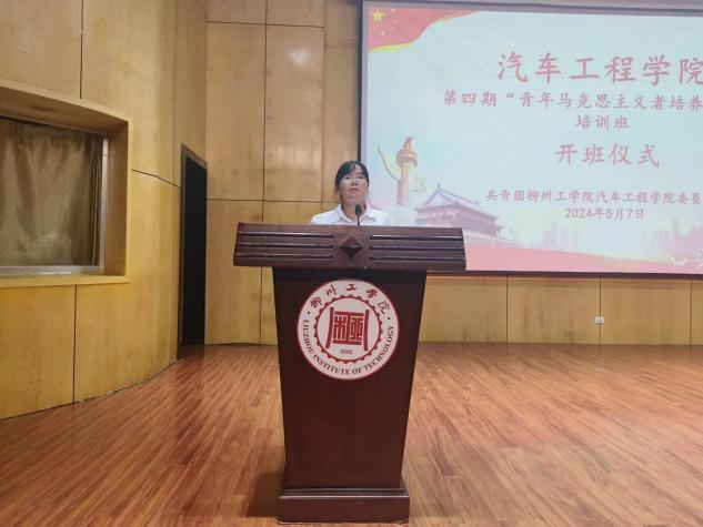 汽车工程学院团委指导老师李敏芳老师宣读《汽车工程学院第四期青马培训开班通知》及任命书。任命书的宣读不仅是对青马学员能力的肯定,更是对他们未来工作的期待与嘱托。