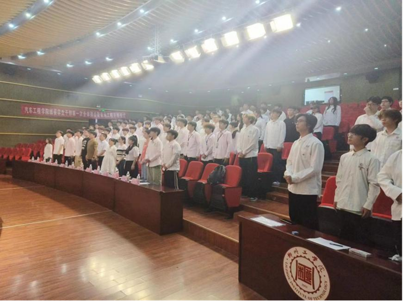 现任汽车工程学院团委学生会执行主席梁睿带领全体学员进行宣誓。全体学员高举右手,庄严宣誓,誓言铮铮,激情满怀,表达了对即将展开的学习之旅的热切期待和坚定决心。