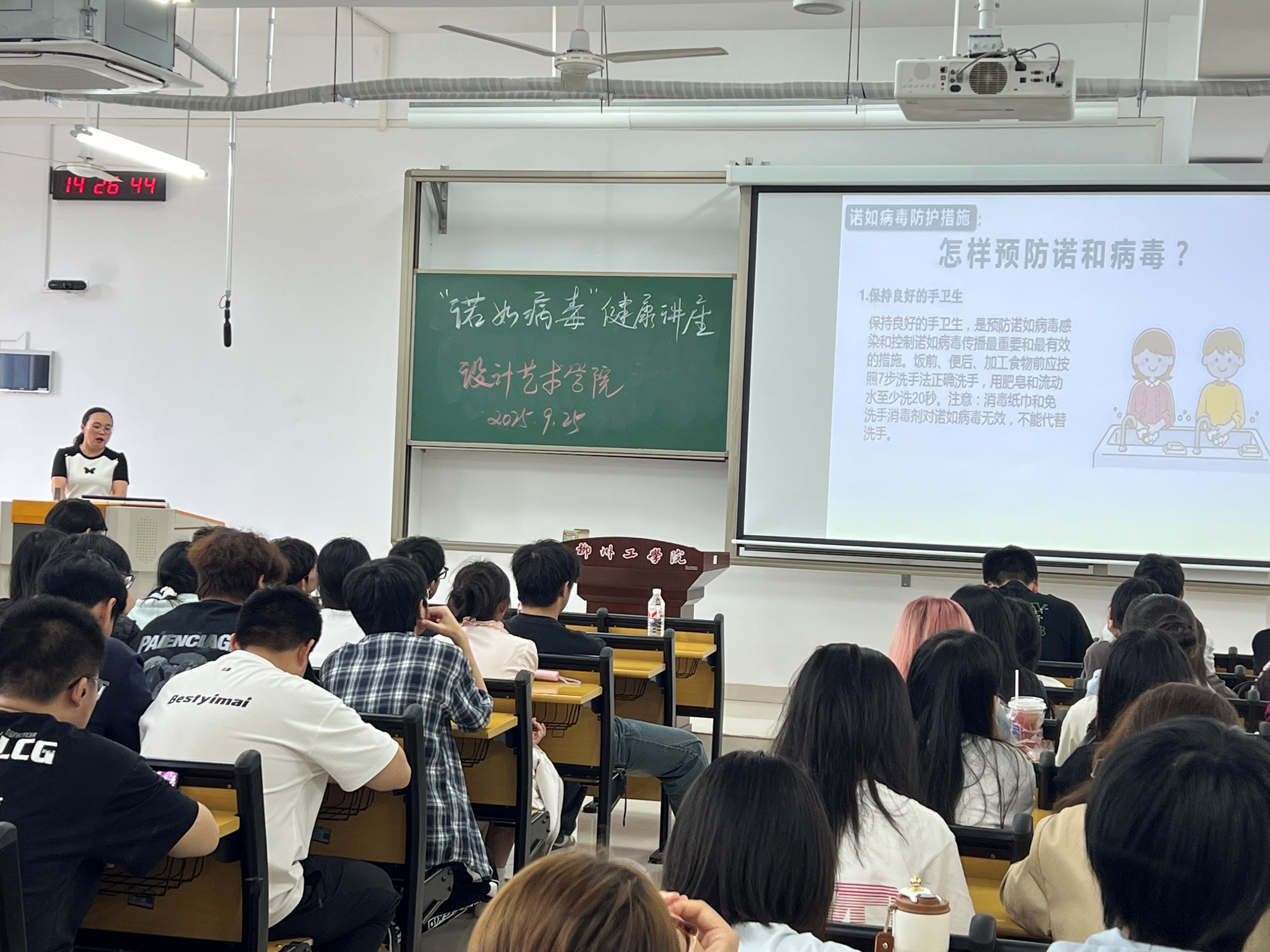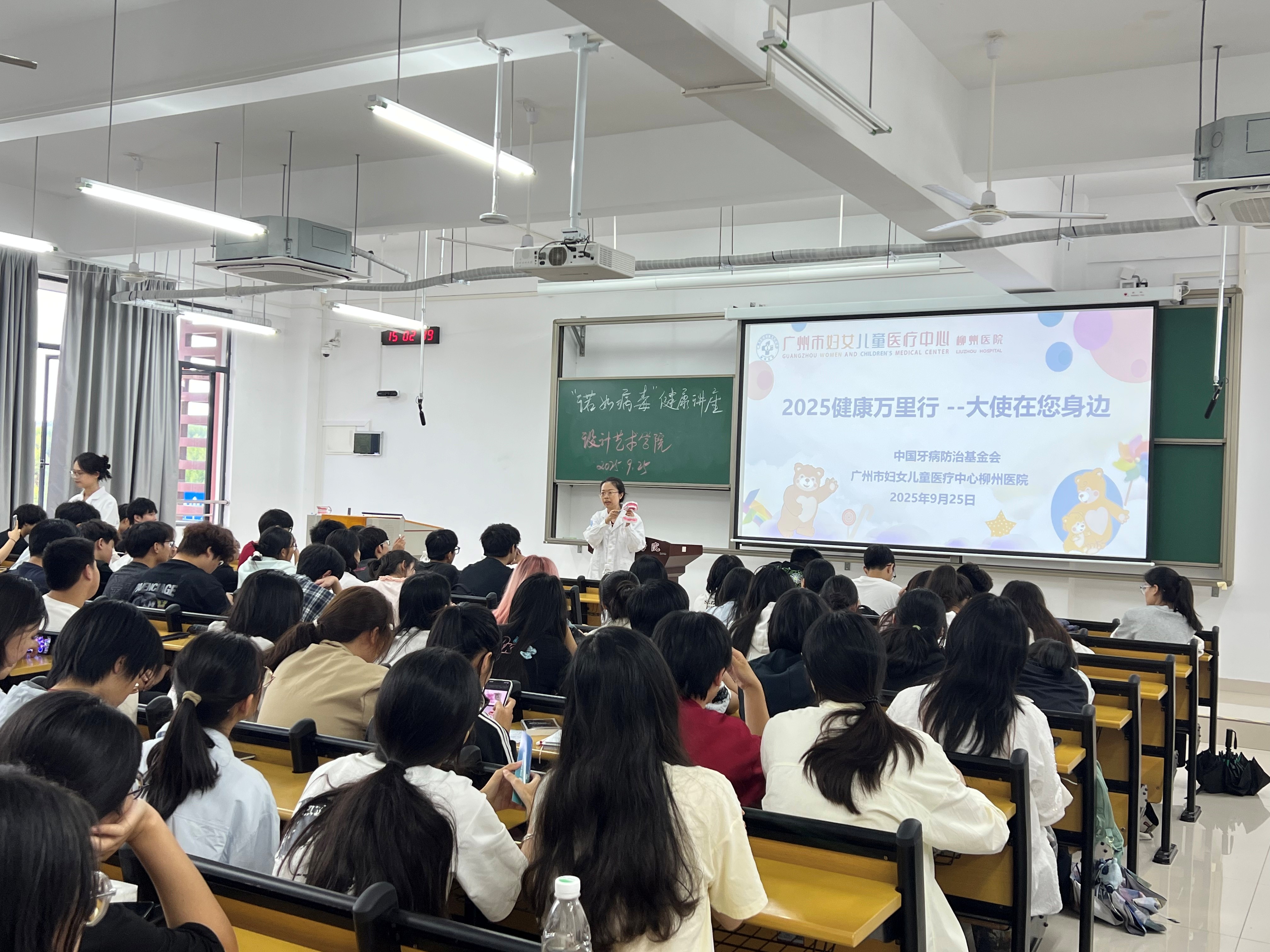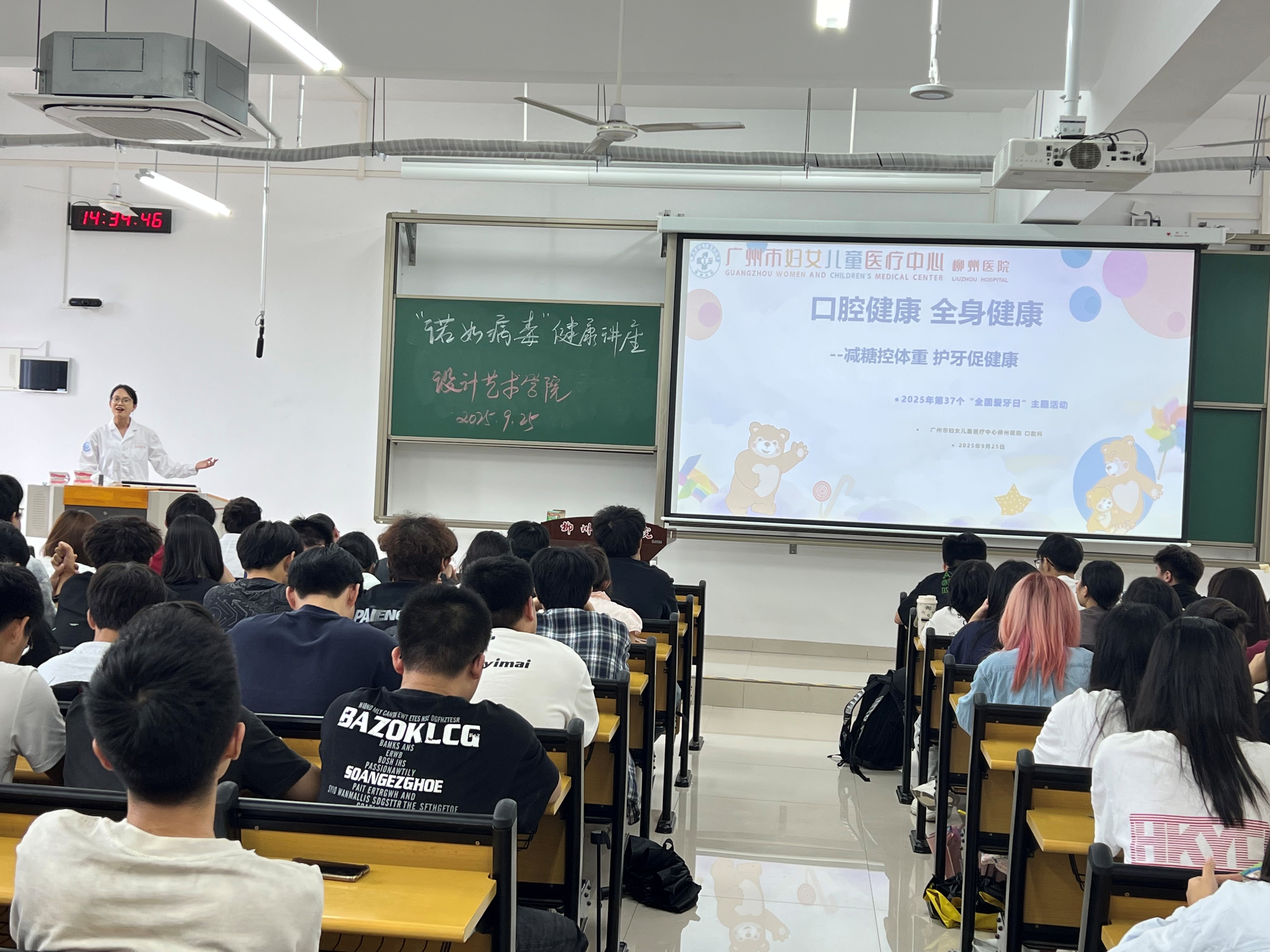 为践行健康中国理念,助力大学生健康成长,科学预防“诺如病毒”和普及口腔保健及眼保健知识。2025年9月25日下午2:30,设计艺术学院邀请广州市妇女儿童医疗中心柳州医院口腔科赵晓琪、袁隽两位医生和学校卫生所文桂芳医生进行专题讲座,2025级辅导员董阮建及140余名新生参加此次活动。讲座由学院党总支书记文海燕主持。