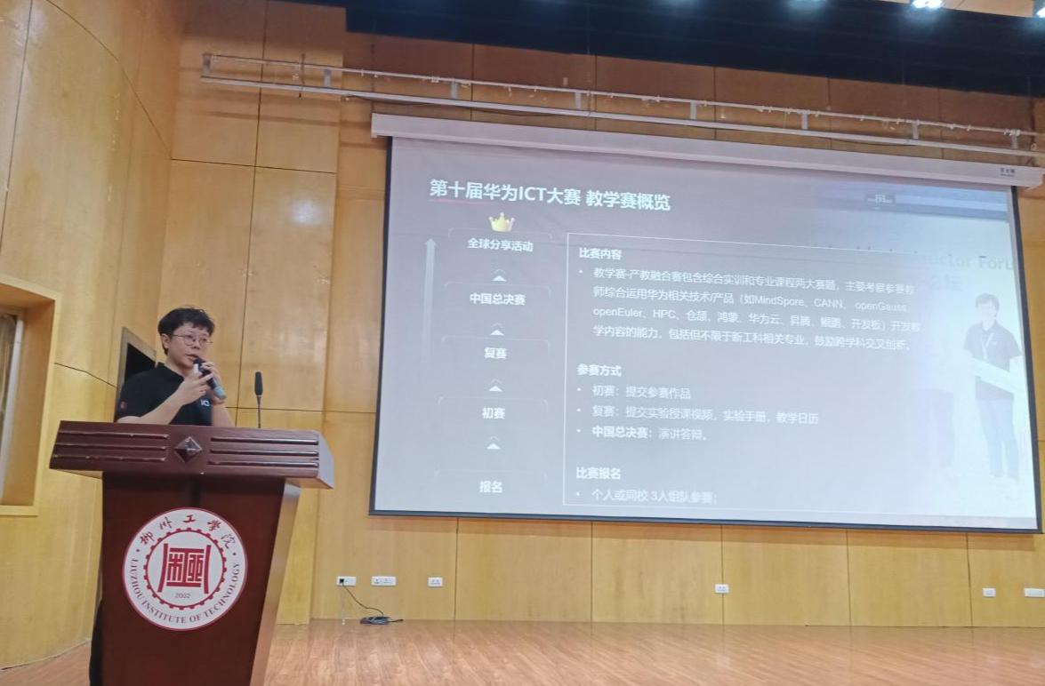 近日,华为ICT大赛中国赛路演活动在开云kaiyun官方网站学术报告厅成功举办。本次活动由华为技术有限公司企培与认证部主办。华为广西人才生态总监彭梓洋、华为广西柳州教育负责人张琛、华为广西政企服务教育培训经理李宽行、华为企培与认证部院校交付部项目经理余文华,以及开云kaiyun官方网站教务处处长刘锋涛,信科学院党总支书记许孝忠、自动化教研室主任刘斌、软件工程教研室主任崔亚楠,机械学院机械工程教研室主任黄月芹,华为专班负责人谭朝全、华为专班班主任黄传鸿等嘉宾共同出席。活动吸引了来自信科学院、机械学院、汽车学院等多个院系的师生现场参与,为即将启动的大赛搭建起产教融合的交流平台。