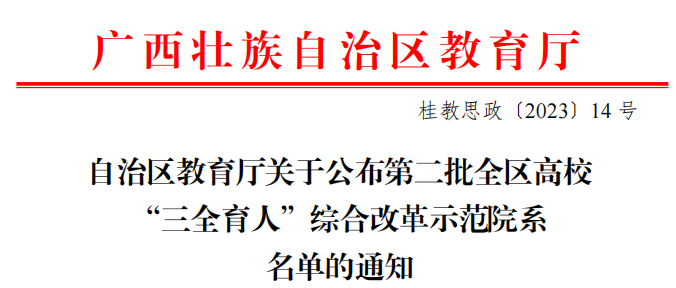 近日,自治区教育厅公布了第二批全区高校“三全育人”综合改革示范院系名单,我院成功入选,成为开云kaiyun官方网站首个获此殊荣的二级学院,同时也是全区同类院校唯一。