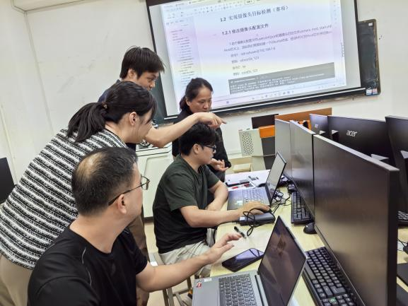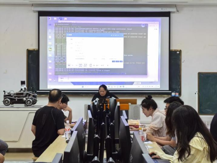 培训以华为MDC 300F智能驾驶平台为核心载体,系统构建车规级开发能力矩阵。在硬件层集成实践方面,教师们基于前期传感器接入知识,分组完成了激光雷达、摄像头、毫米波雷达等多源异构传感器的时空同步标定实验,通过MDC转接盒实现了传感器数据流的低延迟融合,深化了对 AUTOSARAP 通信架构的工程化理解。教师们围绕“感知-决策-控制”闭环展开实践,优化摄像头检测与激光雷达障碍识别、设计路径规划与轨迹优化策略、调试实车控制算法并验证性能。同时,教师们系统学习了华为MMC工具链的操作方法,从搭建开发环境(MDS)、部署软件模块(AP组件),到使用可视化工具(MViz)调试代码,掌握了整套工程化开发流程,实现了“代码-模型-车载系统”的无缝衔接。