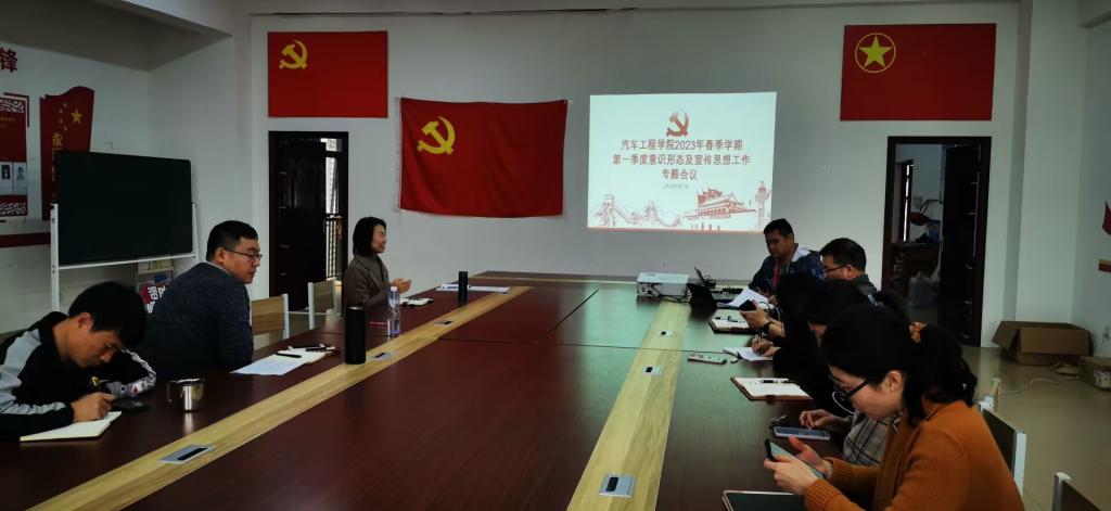 3月7日,汽车工程学院党总支书记李嘉迪组织召开了学院2023年春季学期第一季度意识形态工作及宣传工作专题会议。学院各基层党支部书记、副书记,兼职组织员,分工会主席,团委书记,全体辅导员,部分党员、团员学生代表参加会议。