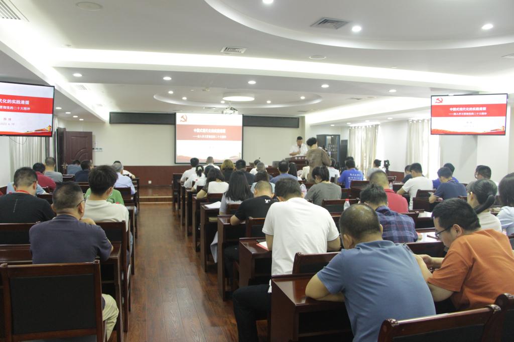 魏锋教授从中国式现代化的历史轨迹、中国式现代化的鲜明特色、中国式现代化的实践根基、制造业现代化的实践遵循等四个方面进行深刻阐述。她指出,党的二十大报告指明了党和国家事业的前进方向,是我们党团结带领全国各族人民在新时代新征程坚持和发展中国特色社会主义的政治宣言和行动纲领。魏锋教授分析阐释了党的二十大报告精要内容,引导党员正确理解和把握二十大报告精神。她指出,学习贯彻习近平新时代中国特色社会主义思想和党的二十大精神,必须正确理解和大力推进中国式现代化。她从中国式现代化历史演进视角深刻分析了中国共产党在新民主主义革命时期、社会主义革命和建设时期、改革开放和社会主义建设新时期、中国特色社会主义新时代各历史时期,从未忘记探索中国式现代化道路的历史使命。