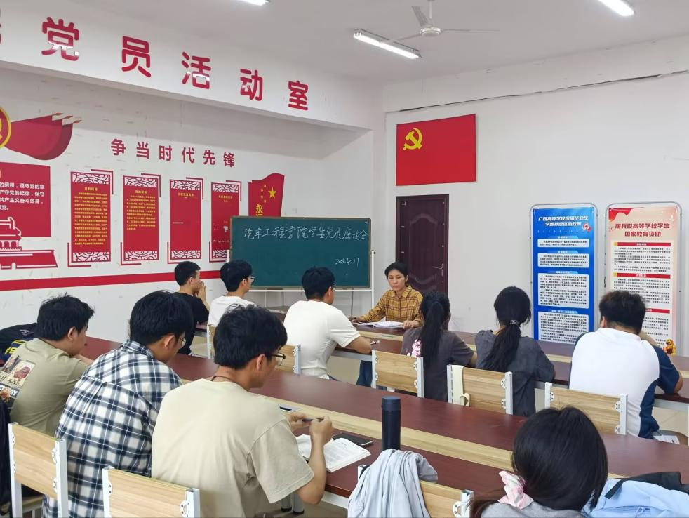 为推动青年党员深入学习党的理论和方针政策,筑牢党性根基,全方位提升政治觉悟与能力,激励党员同志在学习生活中勇当先锋,担当使命,2025年4月17日,汽车工程学院在南校区第三实训楼党团活动室召开学生党员交流座谈会。会议由学生第二党支部书记廖燕主持。