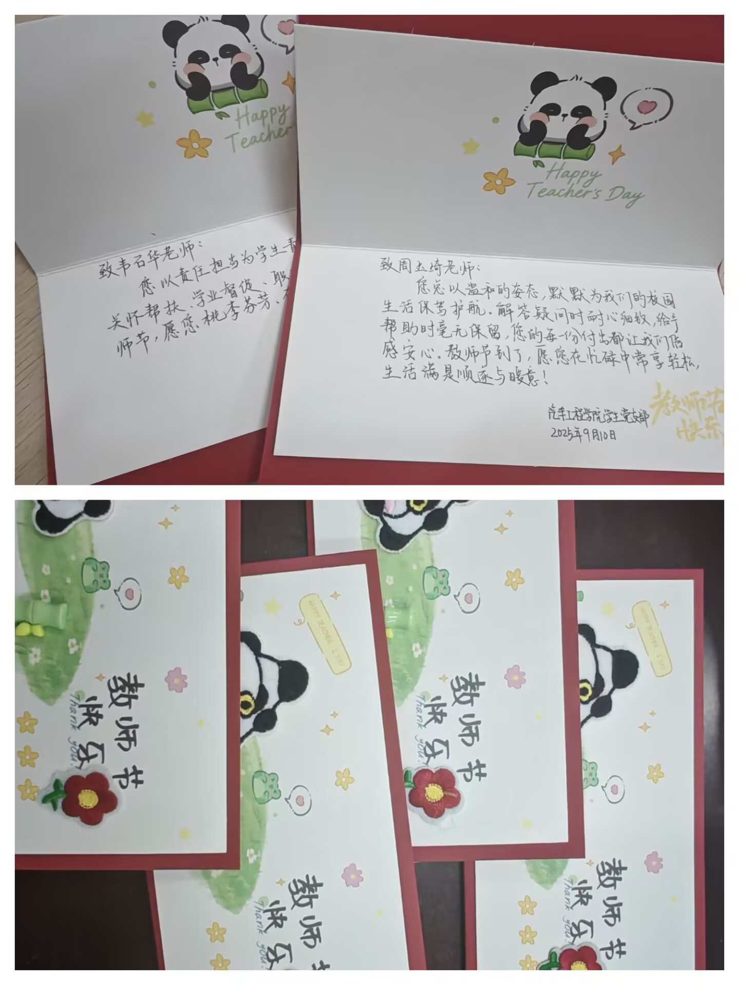 活动前期,学生党员们利用课余时间用心筹备。手写贺卡上,每一笔字迹都承载着对老师课堂谆谆教诲的铭记,以及生活中温暖关怀的感念;挑选的鲜花色泽饱满、生机盎然,象征着师生情谊的纯粹与绵长,每一份礼物都饱含着学生们的心意。