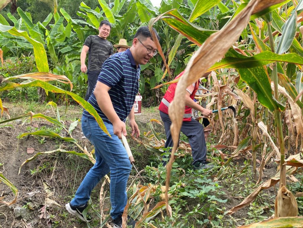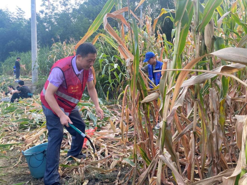 “螺丝钉”党员义工服务团帮助农户收拾玉米